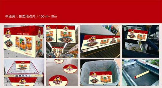 中距离(售卖地点内)100米至10米范围内的品牌诉求信息传达。